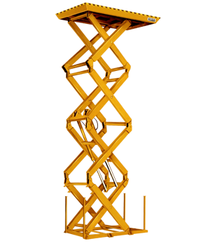 This quad scissor lift table is designed and constructed for heavy-duty applications that require extended vertical travel. Capacities from 3,000 lbs. to 6,000 lbs are available with lift height to 356".