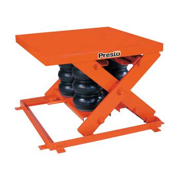 These heavy-duty pneumatic scissor lift tables feature additional airbags to handle increased capacity - up to 8,000 lbs. They require no electricity and can be used anywhere that shop air is available.