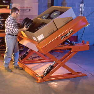 These hydraulic scissor lift tables in 2,000 or 4,000 lb. capacities lower flat to the floor allowing them to be loaded and unloaded with a hand pallet truck. They are ideal for facilities without fork lifts or stackers. They often increase worker productivity because workers can load and unload them without having to wait for a fork lift or stacker.