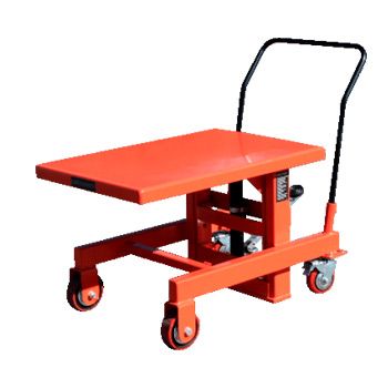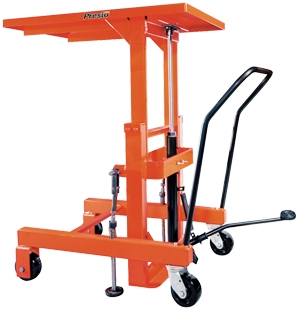 An easy to use foot pump raises this hydraulic lift a full 5 feet high. The ergonomically designed drive handle is at a comfortable height and makes this unit extremely manueverable.