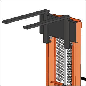 Ideal for overhead installation. Forks can be inverted which effectively increases the stackers lowered height and raised height.
