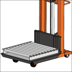 Excellent for transferring heavy object to or from a stacker with minimum effort. 3" rollers can be oriented front-to-back or side-to-side. Maximum capacity is 1,000 lbs. Requires a 24" load center. |