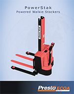 This 8 page color brochure provides a basic overview of all the products offered by Presto ECOA Lifts including stackers, lift tables, tilters, and pallet positioners.